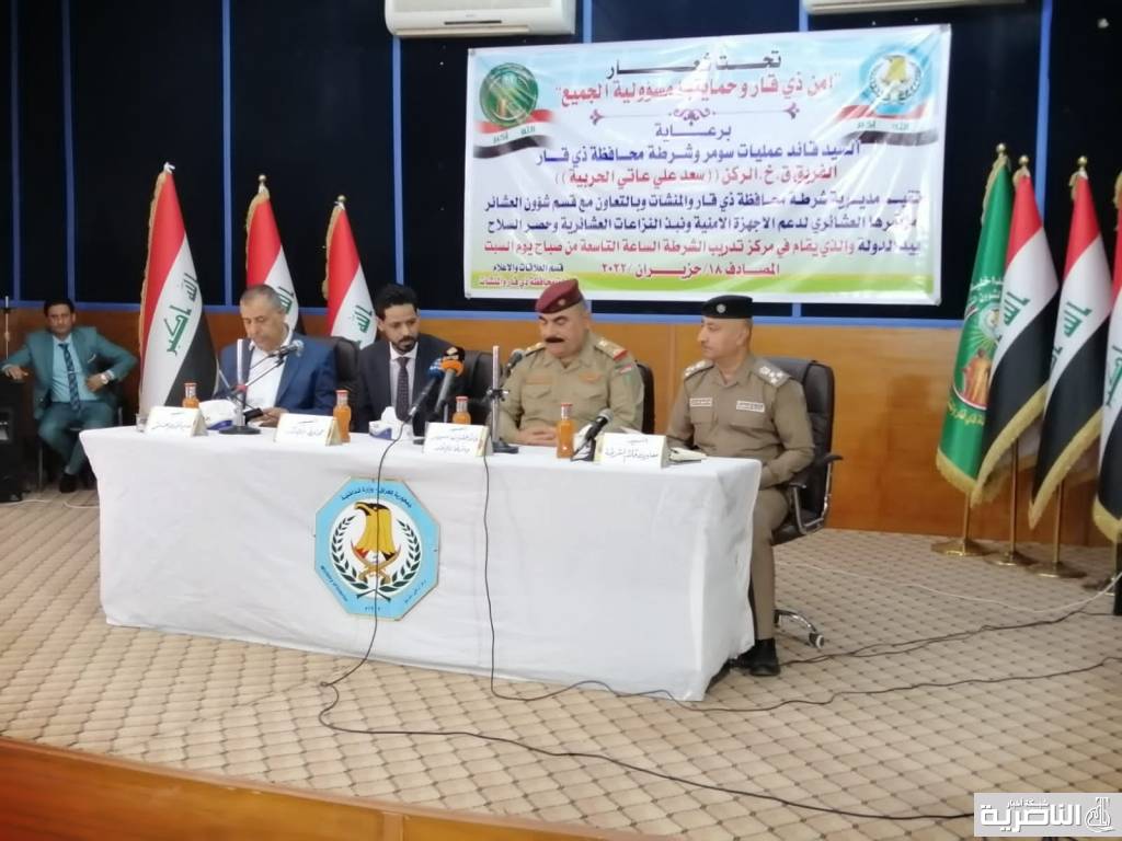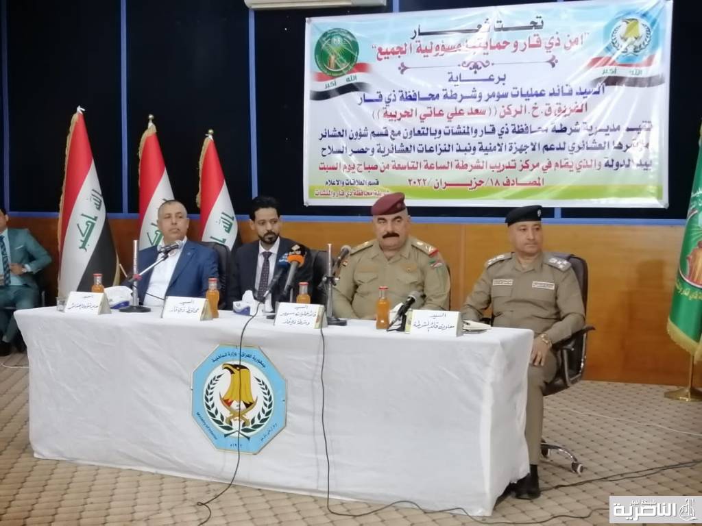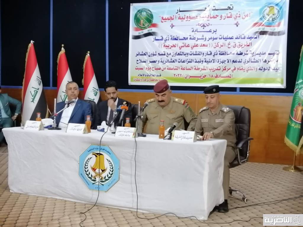 نظَّمت قيادة شرطة ذي قار وبالتعاون مع قسم شؤون العشائر فعاليات المؤتمر الأمني لدعم الشرطة في فرض القانون وحصر السلاح بيد الدولة.