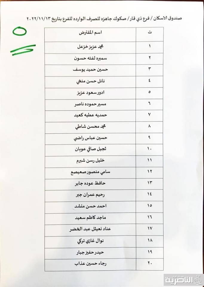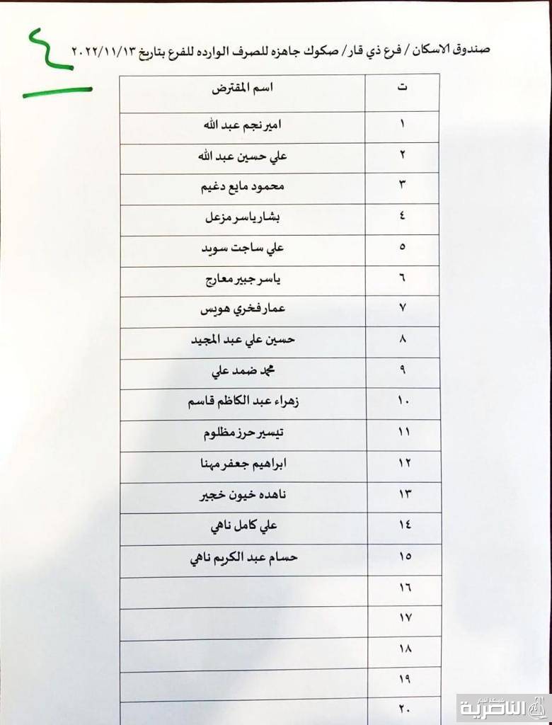 وقال مصدر في الصندوق لشبكة اخبار الناصرية ، ان وجبة جديدة من الصكوك تضم 106 صكَّاً وصلت الى المحافظة اليوم .