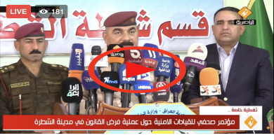 تلفزيون الناصرية: مؤتمر صحفي للقيادات الامنية حول عملية فرض القانون في مدينة -بث مباشر-