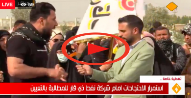 تلفزيون الناصرية: بث مباشر للاحتجاحات امام شركة نفط ذي قار للمطالبة بالتعيين